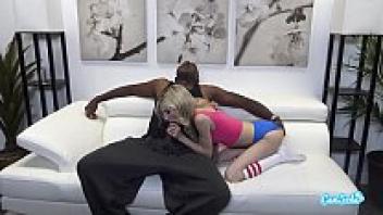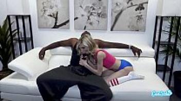 Piper Perri, a petite blonde teen, is seen live on CamSoda sucking on a large black and blonde cock.