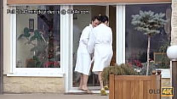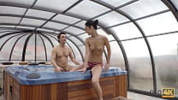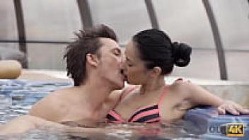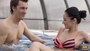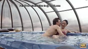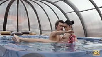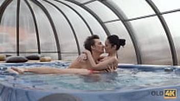 OLD4K. An elderly man has come to pierce a girl's trimmed pussy besides the swimming pool.