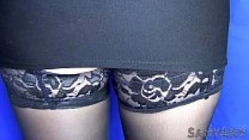 This stunning businesswoman, dressed in black satin, nylons, and heels, wore pantyhose in a doggystyle for sex.