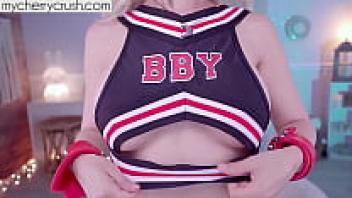 A horny cheerleader wearing a miniskirt and adoring her favourite toy