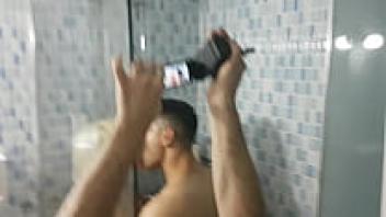 Sarah, a slim, tanned hottie, masturbates on a brown couch!
