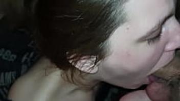 blowjob with deep slobbery from a stunning brunette wearing red underwear