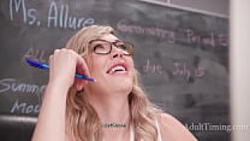 The teacher is immediately corrupted by the students' pitches, and she allows him to love her in the classroom!