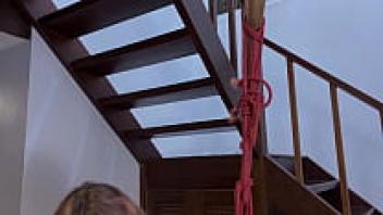 Rope and tickling are used to tie a hottie in stockings.