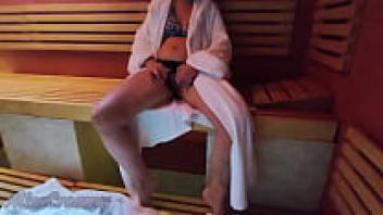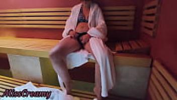 ORGANIC SQUIRT in the PUBLIC SAUNA! Wet pussy and ass fingering in front of a stranger is incredibly dangerous when people are around, according to Miss Creamy.
