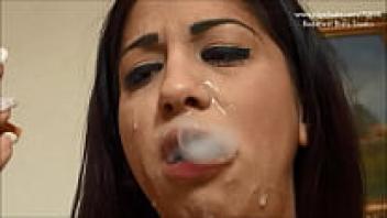 Girl Smokes While Mouthing Cum