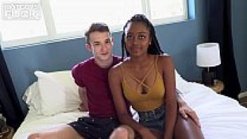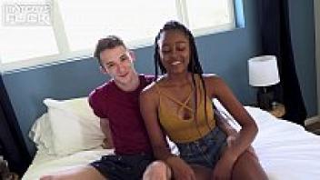 Interracial penetration for the first time! Tea Mint, a skinny girl, had her first taste of a large black cock! EKS 136