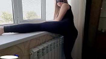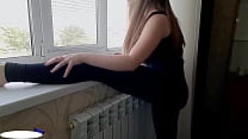 The next-door German pantyhose teen wearing spectacles engages in porn.
