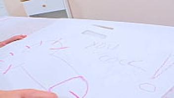 The stepsister makes her brother enjoy her tight pussy by playing with his large dick.