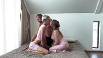 A young stepmother joined Old Young FFM 3Some after catching a small-titted teen in an interracial romance.