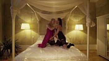 During the threesome, seasoned blonde and brunette lesbians use sex toys to give the cheerleader an orgasm.
