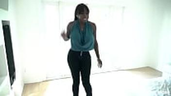 The horny black yoga instructor MILF on FAKEhub has large tits that squirt and spill juice all over her clients' cocks.
