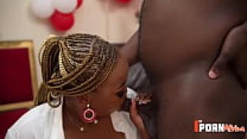 After taking it up the ass from the white man, the black amateur girl drinks cum.