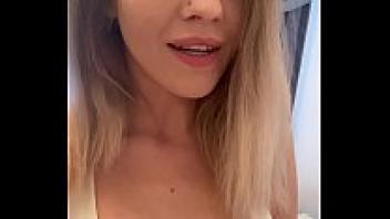 Gorgeous blonde snagging her shaved cock