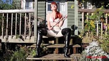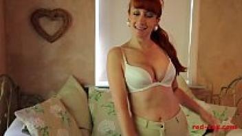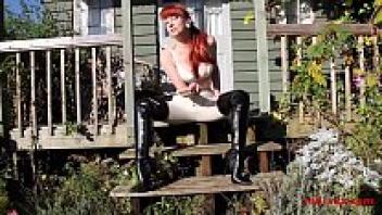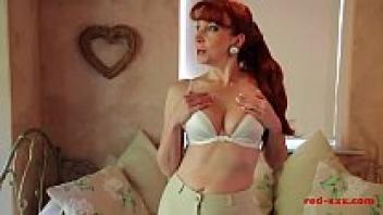 Red XXX, an older redhead, plays with her twat.