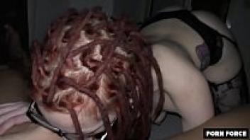 German Amateur Girl Jezzi Cat's Redhead Goth Girlfriend Drains Her Boyfriend's Balls