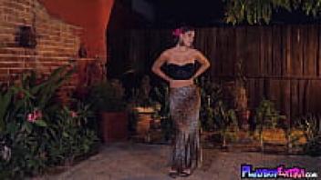 Cassandra Dawn, an exotic beauty, showing off her physique outside