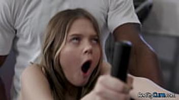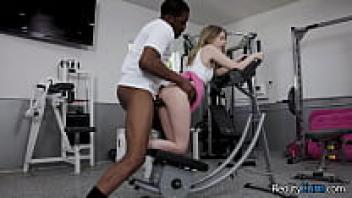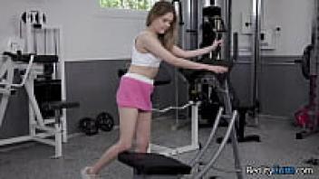 At the gym, a petite blonde adolescent named Coco Lovelock and Isiah Maxwell get their hands on her tight pink pussy.