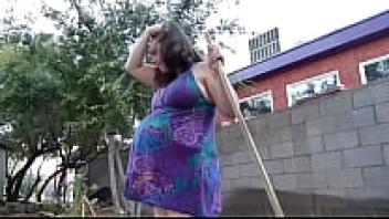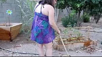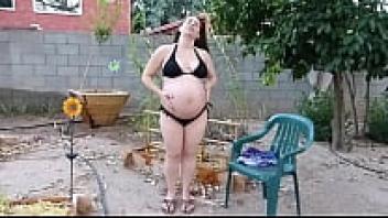 Heavily and Very Pregnant BBW Tracy Jordan: She cleans up the garden and gets contractions at 40 weeks of pregnancy -1080p