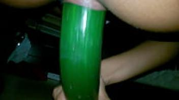 Big Natural Tits babe, she is talking naughty, and she is doing a job with her dildo.