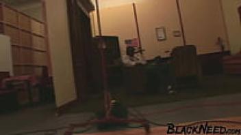 An interracial sex video featuring a student brunette