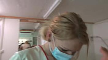 Beautiful nurse 1/3, enormous cumshot, XXL anal strapon, female dominance, BDSM