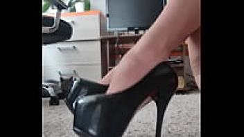 Hot beauty's foot fetish in black shoes