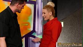 Clothed ho pees on dick.