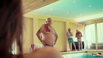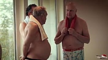 Two grandfather cocks simultaneously penetrated a sweet young pussy hardcore double.