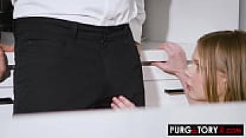 From the perspective of a fat dick, a nerdy intern girl wearing glasses
