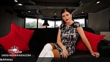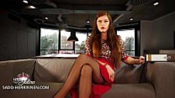 Lady Boss Femdom Handjob in Nude Pantyhose with Crossed Legs
