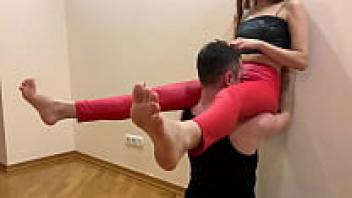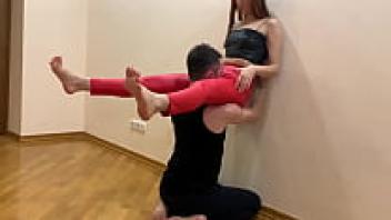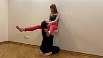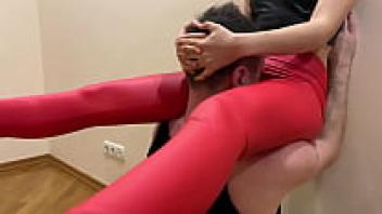 Goddess Kira, dressed in red leggings, tries to worship her pussy in extreme ways (preview)