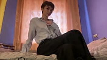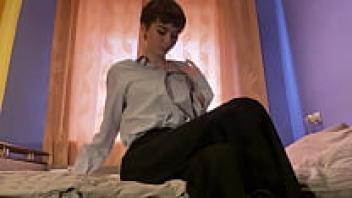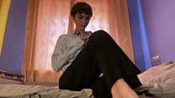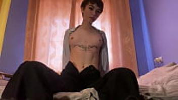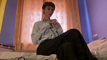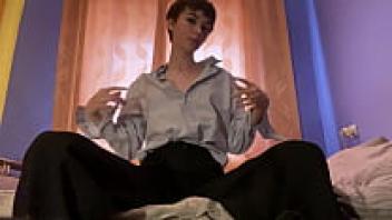 Suddenly, the slim beauty begins to stroke her hairless slit, and she quickly enters an orgasmic state.