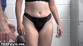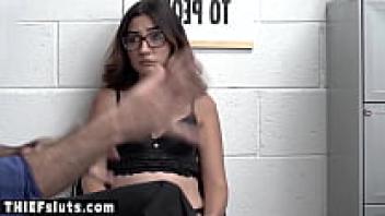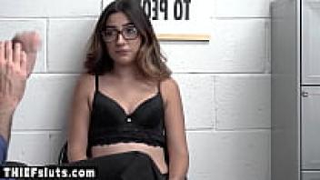 On surveillance footage, a Latina juvenile burglar wearing glasses is seen punishing loved ones.