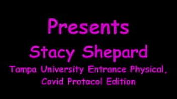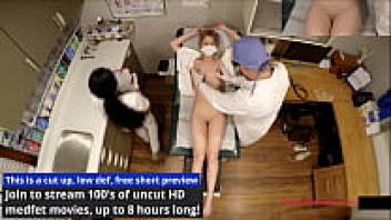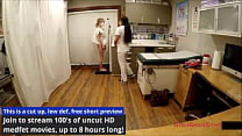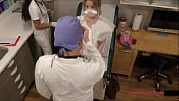 As a first-year student, Stacy Shepard goes through the required new student physical examination, which is performed by Doctor Tampa and Nurse Jasmine Rose, who are both wearing gloves. A Reup from @GirlsGoneGyno