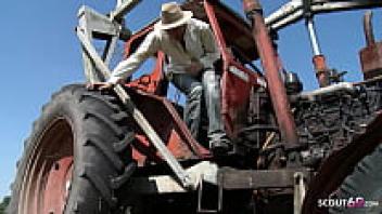 A worker seduces Sandra, a skinny, mature farmer's wife, into having her first anal sex.