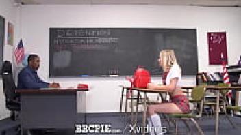 In the classroom, a student teacher is gangbanged.