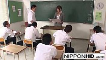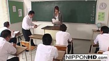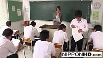 A gorgeous Asian instructor plays with her student's sperm and blows him away.