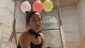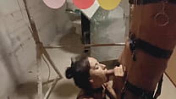 At the parking lot, the domineering girl mistress bound the bondage guy, sucked, and adored his mouth with dildo. Teens and Femdom