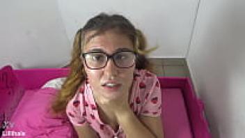 The little girl rides the pink fake cock and then eats her pussy juices.