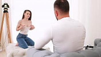 At a porn audition, a cute newcomer is adored by a handsome agent.