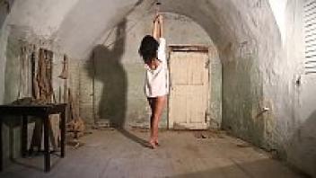 The pallid babe was whipped and tied up.