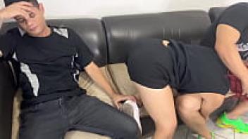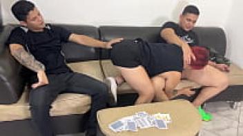 In front of her husband, a beautiful wife must use her body to pay off her partner.