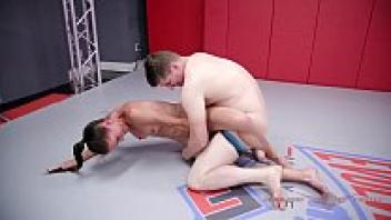 Riley Reyes mixed wrestling Chad Diamond having her pussy eaten