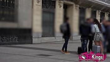 Nuria, a gorgeous Spanish tourist, searches the street for unidentified men to pick up!
