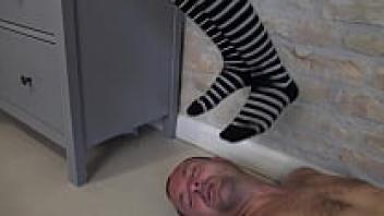 Domination Over Tied Sub: Mouth and Pussy's intense love until Creampie