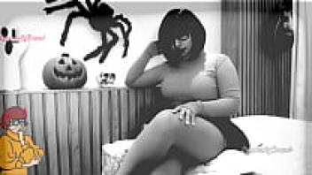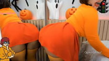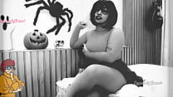 Do you want to play the Halloween red light green light game with Zoombie Velma Dinckley Scooby Doo cosplay? She's tempting with her butt plug and sucking hard on her dildo.