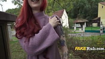 Redhead teen girl with pussy tattoos, picked up from a BBC