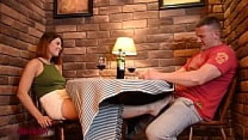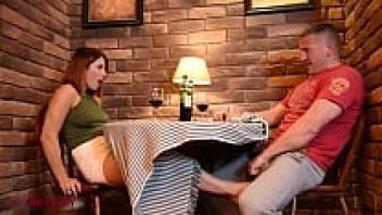 In the cafe, a crazy hot girl sucks the dick beneath the table.