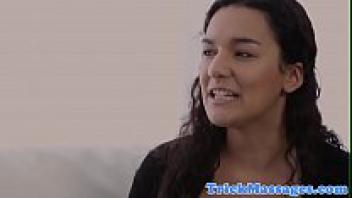 After a massage, a curvy girl is sucking and loving.